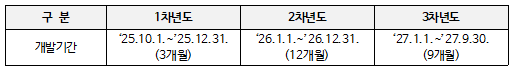 ** 1차년도는 과제 개발 시작일(2025.10.1.)로부터 2025.12.31.까지로 설정