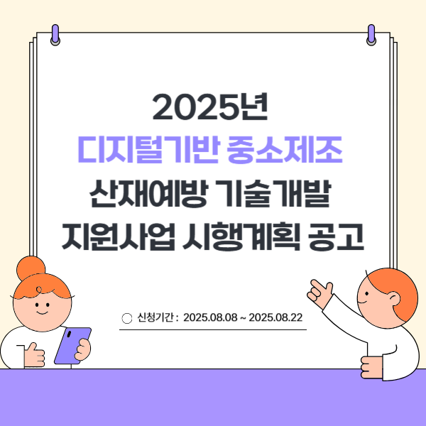 2025년도 디지털기반 중소제조 산재예방 기술개발 지원사업의 시행 계획을