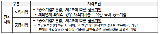 ○ (자격요건) 시스템 구축을 위해 구성된 도입기업과 공급기업의 컨소시엄 과제