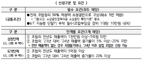 3) 연합회 : 소상공인협동조합(조합원의 50%가 소상공인) 3개 이상으로 구성 또는