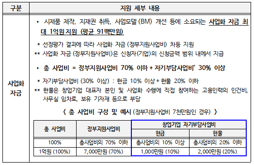 ○ 사업화 자금 최대 1억원 (평균 91백만원)
