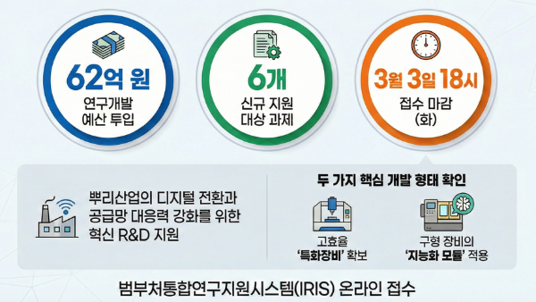 2026년도 뿌리산업 혁신공정장비 개발사업 신규 지원대상 연구개발과제를