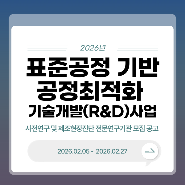 이번에는 「2026년도 표준공정 기반 공정최적화 기술개발(R&D)사업」 공고