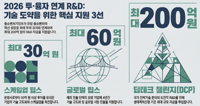 2026년도 투·융자 연계 기술개발사업(스케일업 팁스, 글로벌 팁스, DCP) 공고 내용을