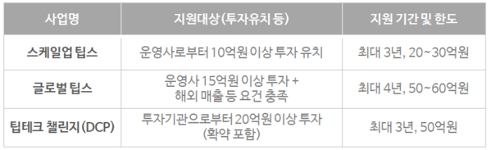 ● 글로벌 팁스(일반형): 15억 원 → 50억 원