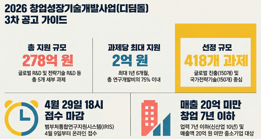 바로 '2026년 창업성장기술개발사업(디딤돌) 3차' 시행계획 공고인데요!