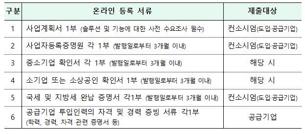 ○ (제출서류) 사업계획서 및 사업자 등록증명원 등(온라인 접수 시 첨부)
