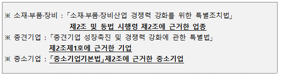 - (지원대상) 소재·부품·장비 분야 중소·중견기업
