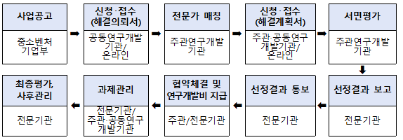 ○ 공동연구개발기관(중소기업)이 해결의뢰서를 중소기업 기술개발사업 종합관리