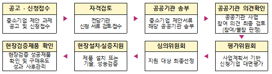 이번에는 중소기업 기술개발제품을 공공기관 현장에 설치하여 성능 시험 등의