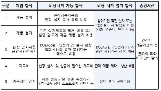 - (참여기업 부담 비용) 총 현장실증비 20% 이상을 부담하여야 하며,