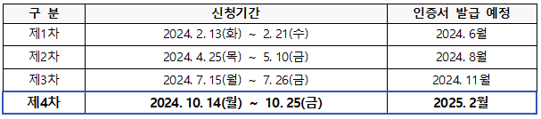 ▣ 신청기간 : (4차) 2024. 10. 14.(월) ~ 2024. 10. 25.(금)