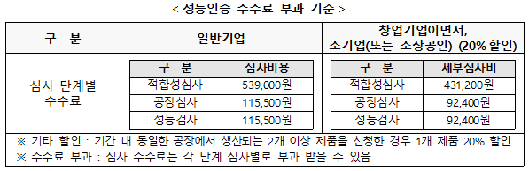 * 시험성적서는 신청일 기준 최초 발급일로부터 3년 이내의 것을 유효한 것으로 인정