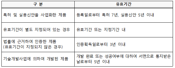 * 기 준 : 중소기업기술개발제품 우선구매제도 운영 등에 따른 시행세칙