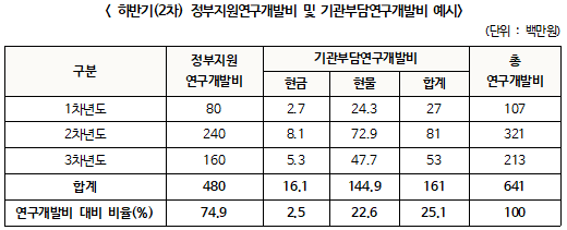 * 전체 기관부담연구개발비(현금+현물) 중 10% 이상은 현금으로 부담