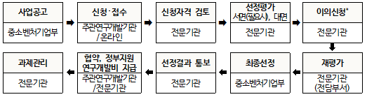 - 기술성, 사업성, 기술개발 보유 역량, 자금집행계획 등을 종합적으로 심사·평가