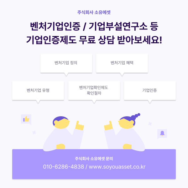 소유에셋에서 벤처기업인증, 기업부설연구소, 이노비즈 등 기업인증 신청을 준비하신다면